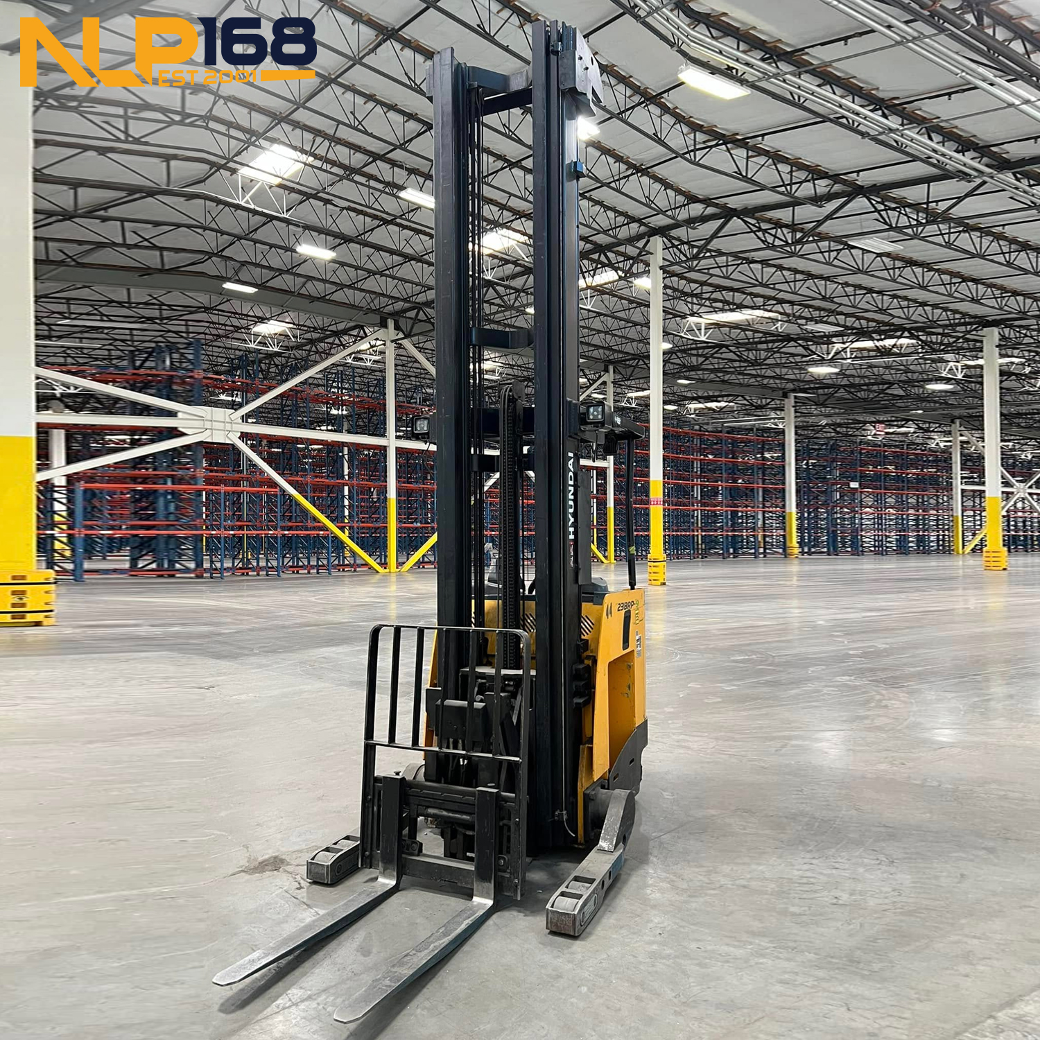 - Nâng cao hiệu quả: Tốc độ nâng và di chuyển tối ưu trong môi trường kho hẹp, với khả năng nâng hàng lên độ cao rất lớn (lên tới 11m+), phù hợp cho tải trọng 2.3 tấn.
